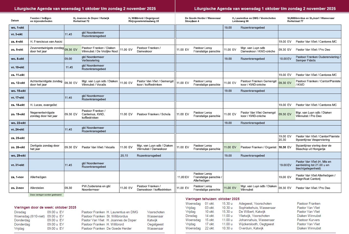 Klik hier voor een gedetailleerd overzicht van de vieringen in oktober 2025